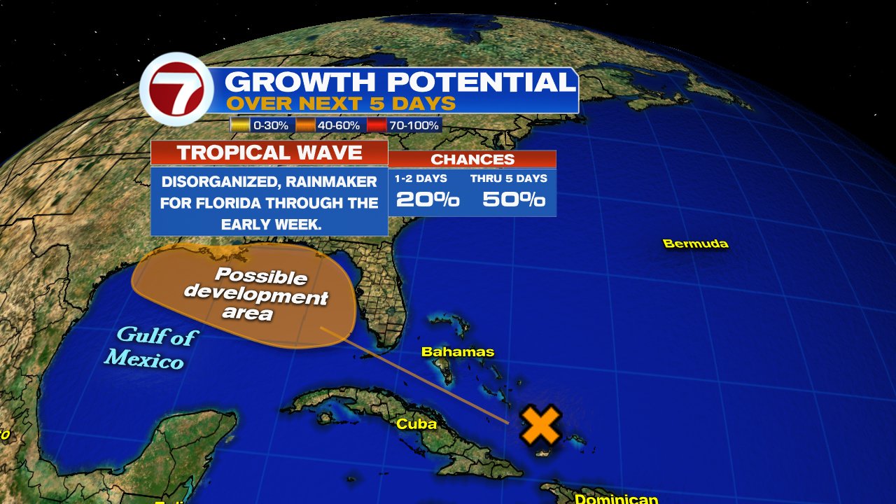 For the Bahamas, Eastern and Central Cuba, as well as South Florida, this wave brings the potential for heavy rain.